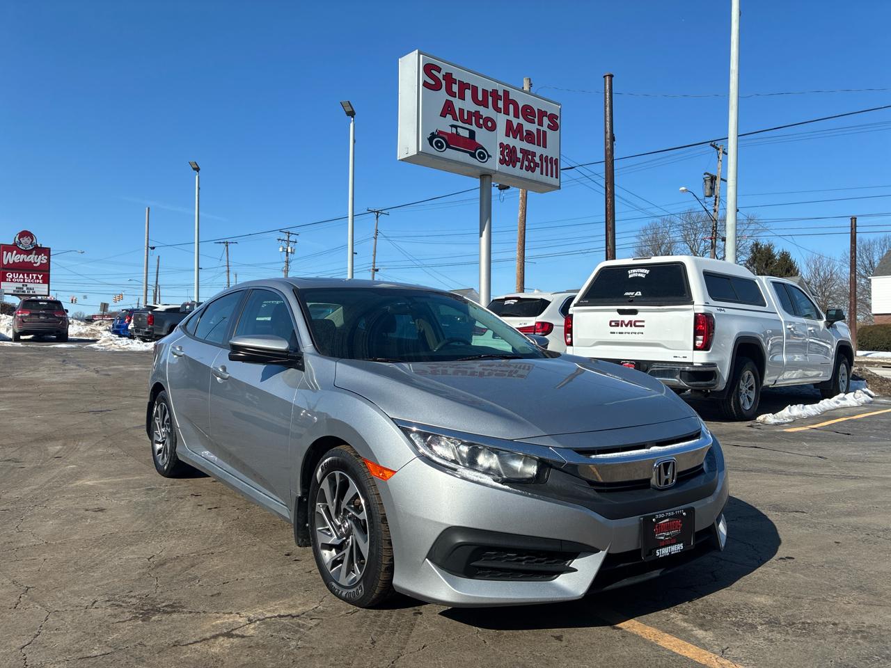 Get ready to hit the road in style with this sleek and sporty Silver 2017 Honda Civic! This car is not only a head-turner with its alloy wheels and power sunroof, but it also offers peace of mind with features like child safety door locks, ABS brakes, and a full set of airbags. Whether you're cruising around town or embarking on a road trip, you'll appreciate the comfort and convenience of the separate driver/front passenger climate controls, cruise control, and tilt steering.