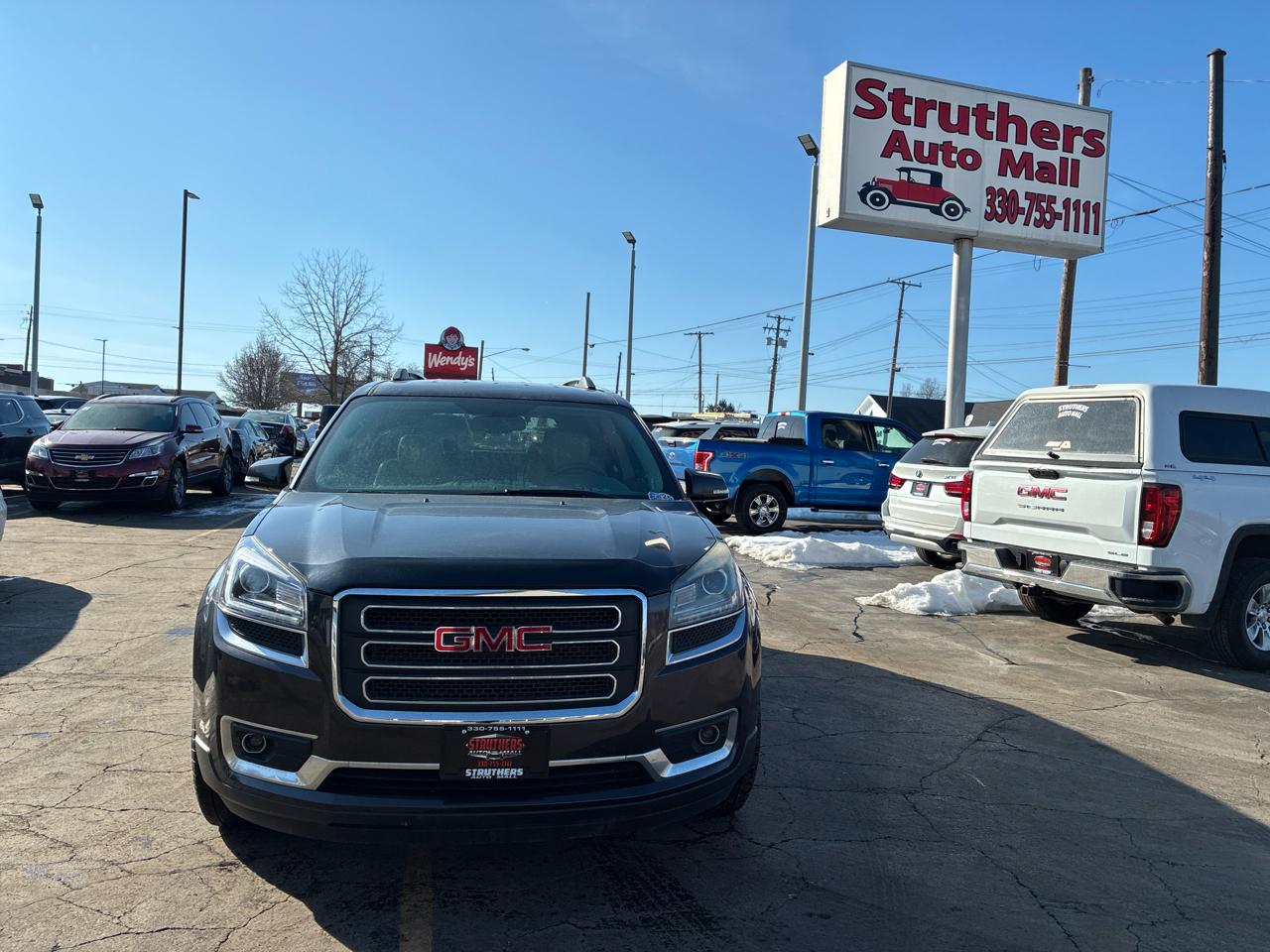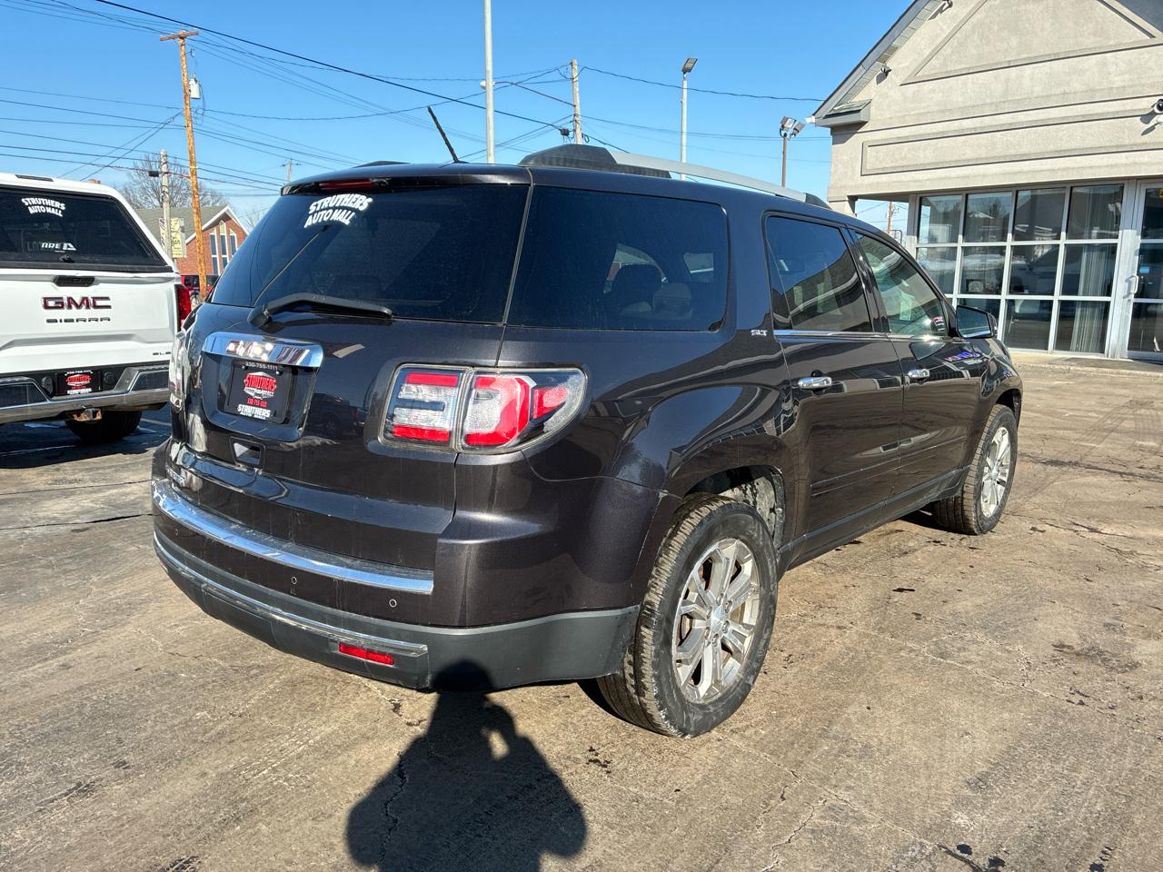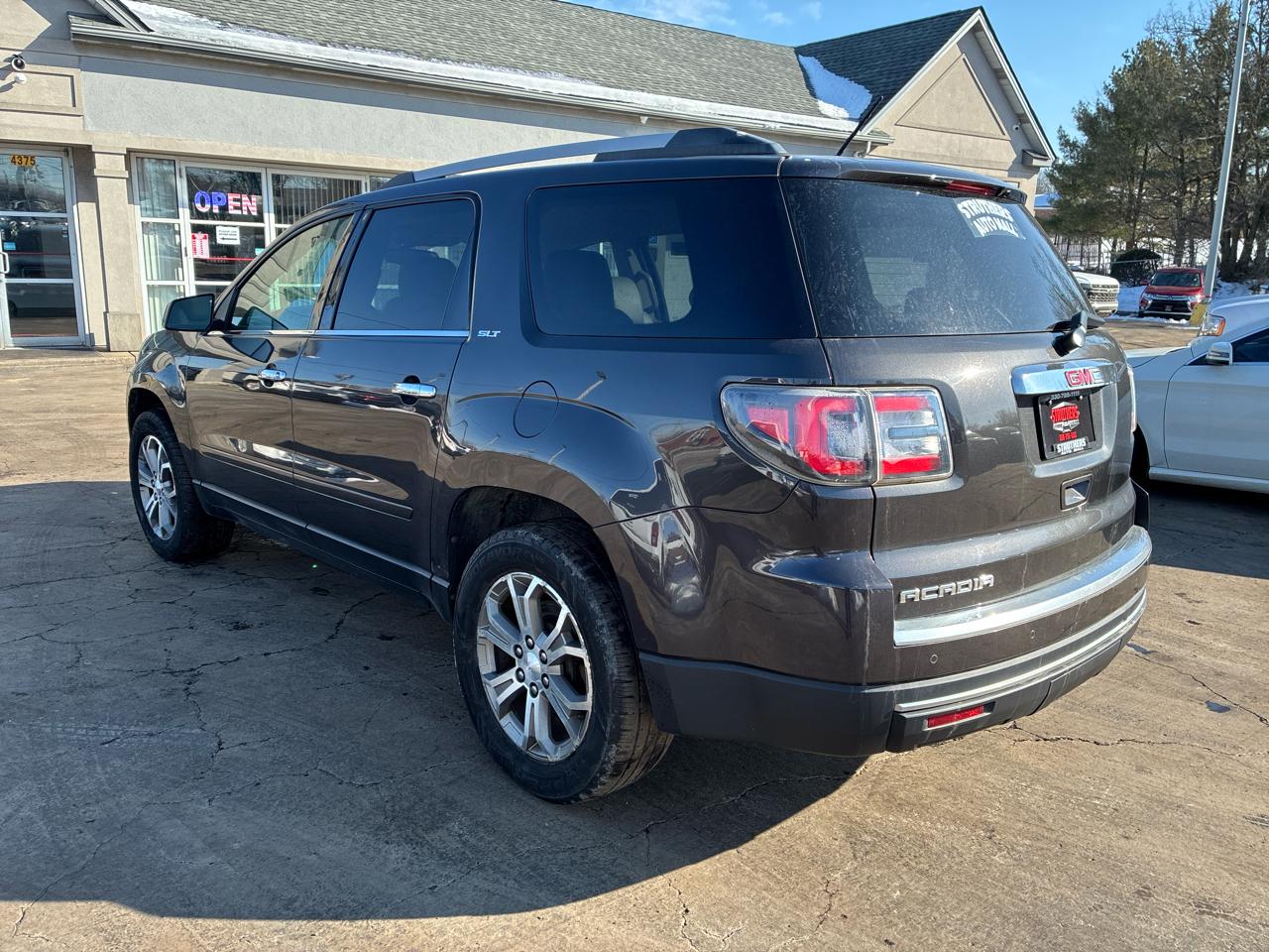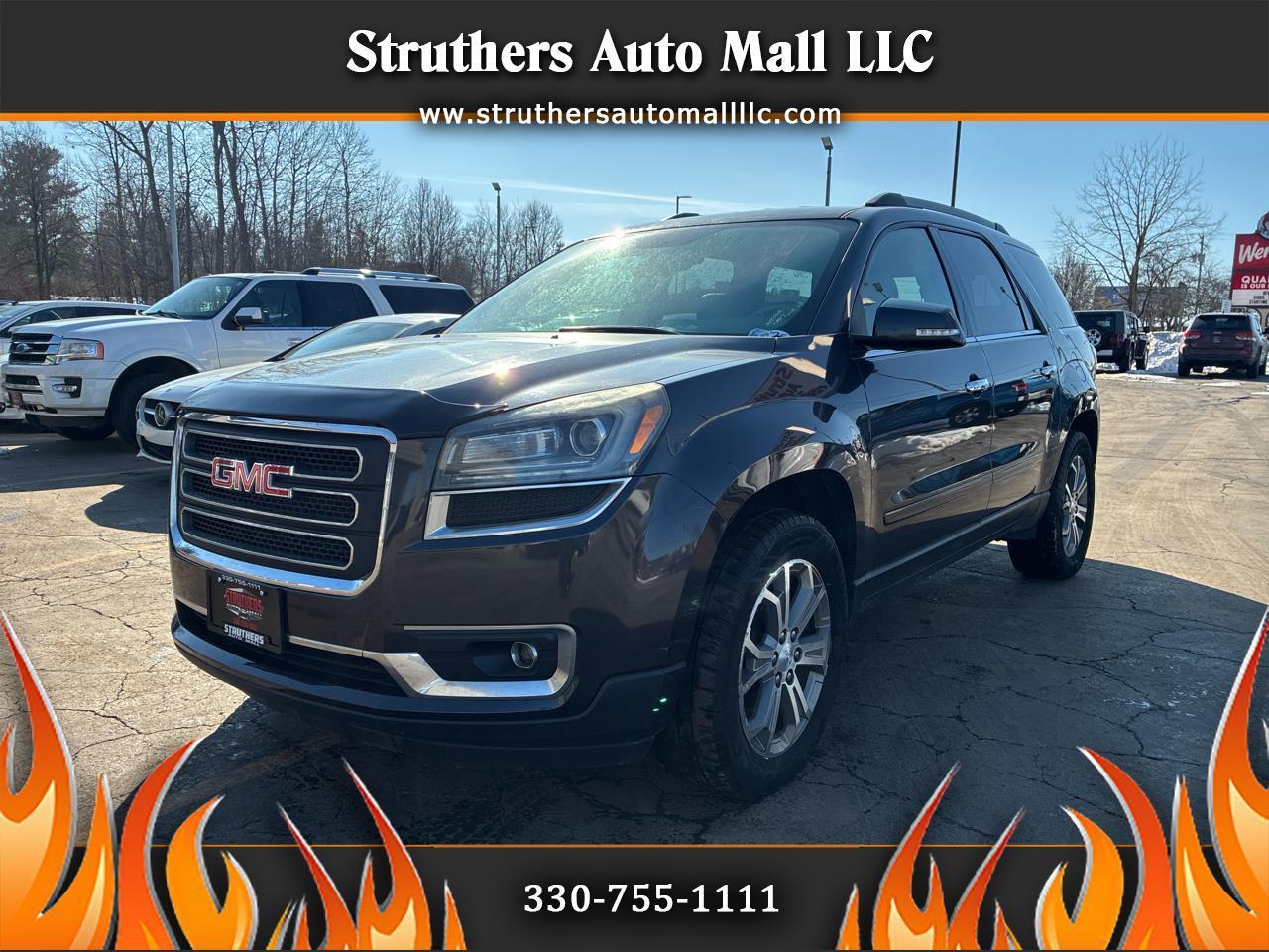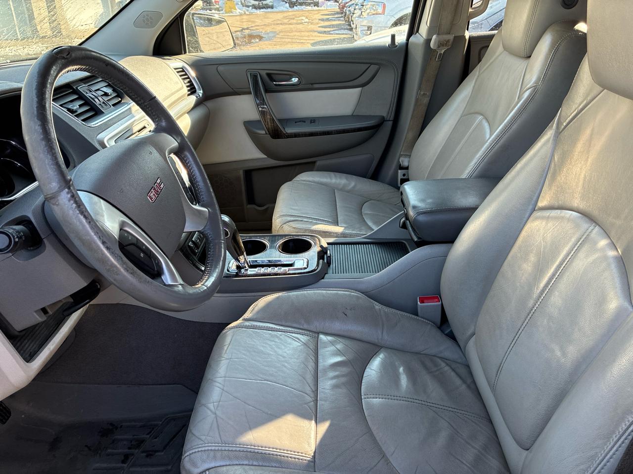 Get ready to take your family on countless adventures with this sleek and reliable 2015 GMC Acadia in classic Gray. This spacious SUV comes loaded with safety features to give you peace of mind on the road, including child safety door locks and multiple airbags. You'll love the convenience of power door locks and keyless entry, making getting in and out a breeze. With separate climate controls, everyone can ride in comfort no matter the weather outside. The leather seats add a touch of luxury, especially with front heated seats for those chilly mornings. Whether you're cruising down the highway or navigating through city streets, the traction control and stability control system will keep you on track. The alloy wheels and rear spoiler give this Acadia a sporty edge, while the rear window defogger and automatic headlights add to the overall convenience. Tackle any journey with confidence, knowing that a detailed Carfax report is available for this exceptional vehicle. Don't miss out on this incredible opportunity to make memories in style!