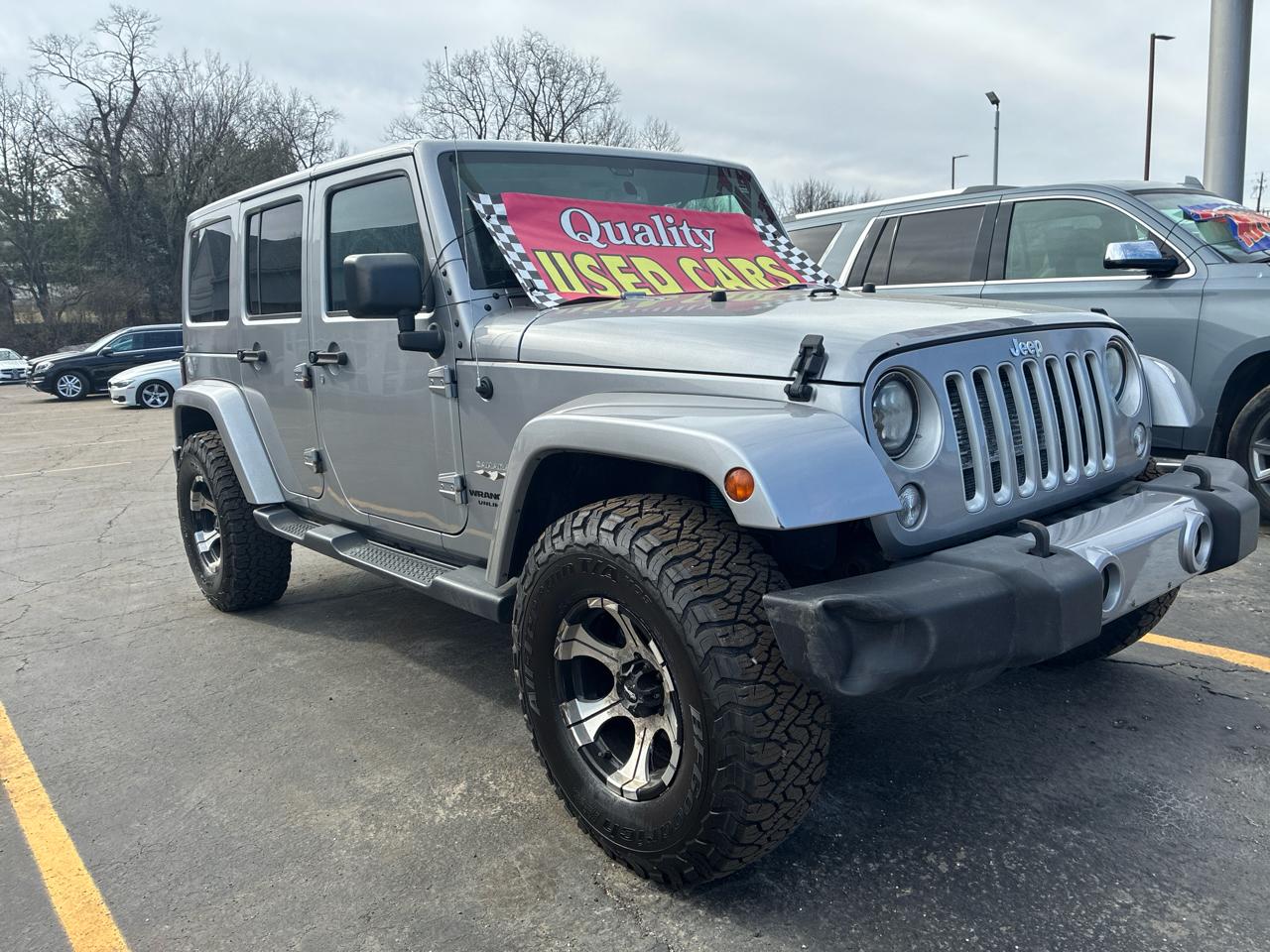 Get ready to hit the trails in style with this sleek Gray 2017 Jeep Wrangler! This rugged yet refined vehicle is perfect for adventures both off-road and on the highway. You can feel confident knowing that this car is equipped with top-of-the-line safety features such as ABS brakes, traction control, and multiple airbags to keep you and your passengers safe. With its removable top, you can enjoy the wind in your hair on sunny days, and when the weather turns, the fog lights will guide your way. The alloy wheels and running boards give this Jeep a cool look while providing extra functionality. Plus, the cargo area tiedowns will keep all your gear secure during your travels. Inside, you'll find a leather steering wheel, cruise control, and a tachometer for a comfortable and convenient driving experience. Best of all, a Carfax report is available for your peace of mind. Don't miss out on this fantastic opportunity to own a reliable and stylish Jeep Wrangler that is ready for any adventure that comes your way!